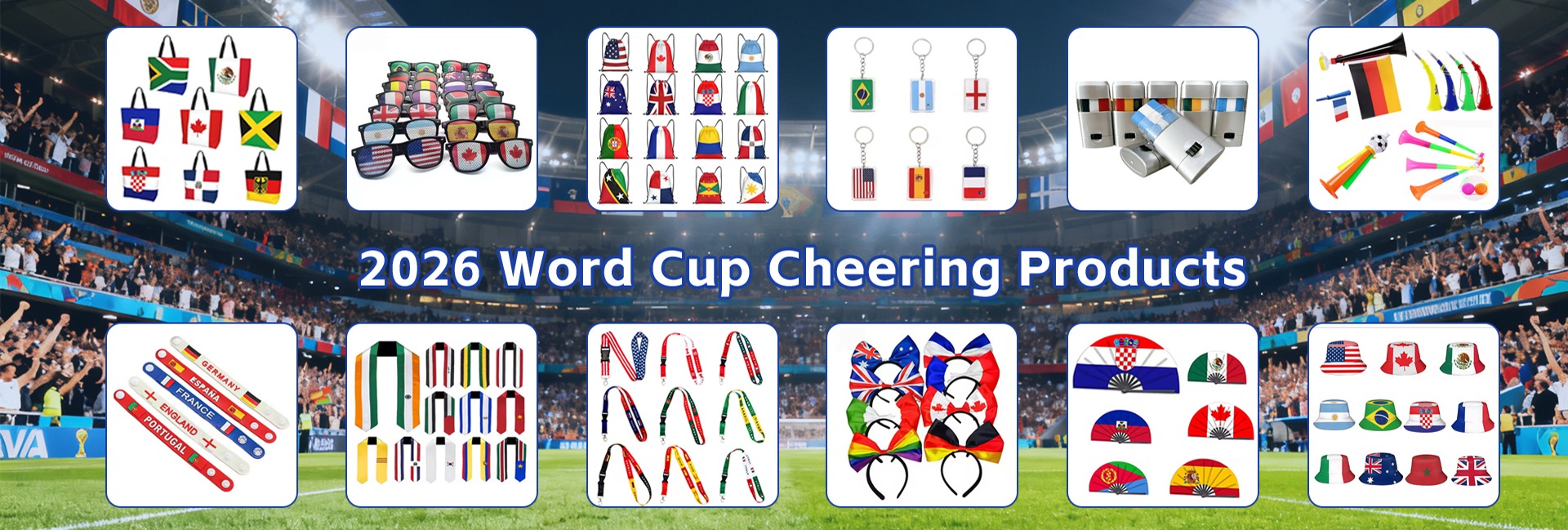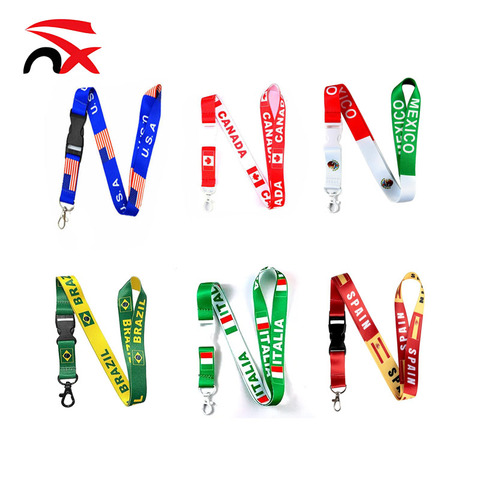 Suministros promocionales para juegos de fútbol, accesorios, 90*2cm, EE. UU., Canadá, México, bandera, cordón de poliéster con logotipo