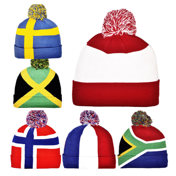 Diseño de bandera personalizado de lujo cálido invierno al aire libre acrílico Spandex tela gorros de punto sombrero con logotipo
