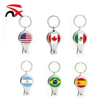 Cortaúñas multifuncional personalizado, bandera nacional de Metal redonda, cortador de uñas portátil, llavero con abrebotellas