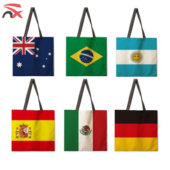 Bolso de compras de lona de hombro para mujer con logotipo de Bandera de País de gran capacidad de alta calidad